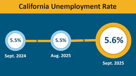 California’s unemployment rate changed little to 5.6 percent and California’s nonfarm payroll jobs decreased by 4,500 in September 2025, according to the latest Employment Development Department (EDD) data that comes from two separate surveys. September’s job loss follows a downward revision (-14,100) for August 2025, resulting in a nonfarm job loss of 10,300 for the month.